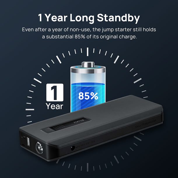 Ακόμη και μετά από ένα χρόνο μη χρήσης, ο εκκινητής άλματος εξακολουθεί να διατηρεί ένα σημαντικό 85% της αρχικής του φόρτισης.
