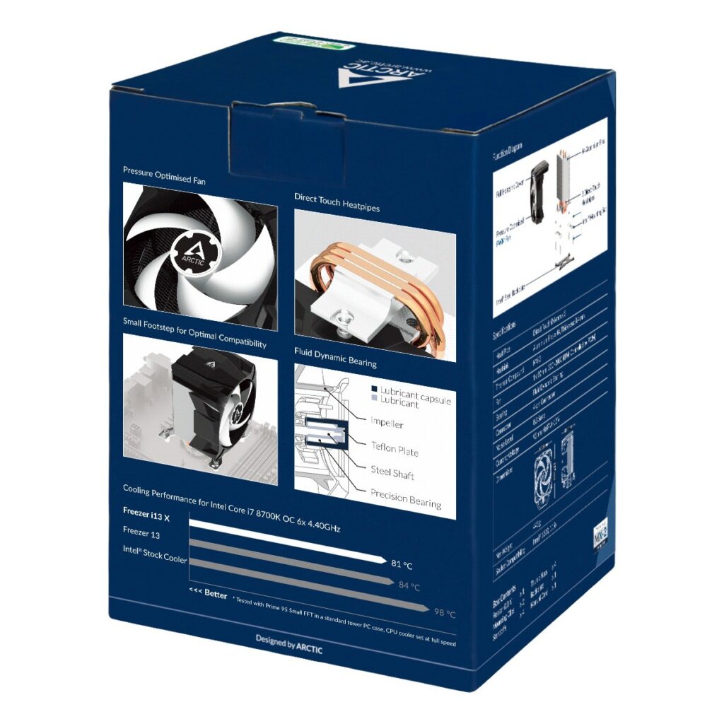 Το Freezer i13 X συνδυάζει ένα συμπαγή προηγμένο σχεδιασμό heat sink με 3 Heatpipes άμεσης αφής. Σε συνδυασμό με τον ανεμιστήρα που έχει σχεδιαστεί για στατική πίεση, επιτυγχάνεται βέλτιστη απόδοση ψύξης παρά τις συγκριτικά μικρές διαστάσεις. Το Freezer i13 X έχει ύψος μόνο 137 χιλ. και δεν υπάρχουν περιορισμοί στη συμβατότητα της RAM.