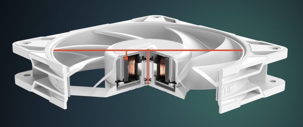 Ο ανεμιστήρας προσφέρει μεγαλύτερη απόδοση σε χαμηλές ταχύτητες με υψηλότερη ροή αέρα από τα προηγούμενα μοντέλα και στατική πίεση σε μόλις 25 dB(A) – ιδανικός για αθόρυβη, ισχυρή ψύξη.
