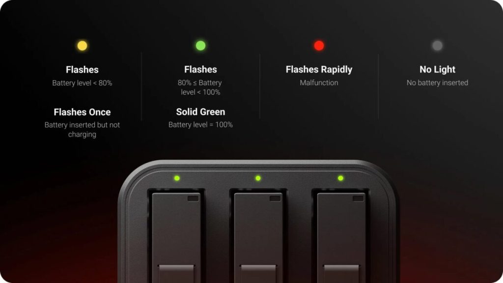 Φορτίστε με ασφάλεια έως και τρεις μπαταρίες ταυτόχρονα στη μέγιστη ισχύ. Κάθε υποδοχή φορτίζει ανεξάρτητα, ώστε να μην χρειάζεται να ανησυχείτε για υπερφόρτιση.